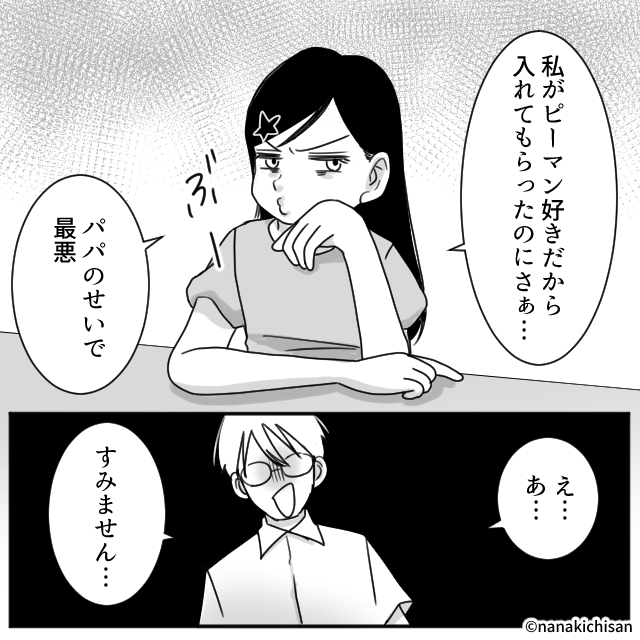 「私がピーマン好きだから入れてもらったのにさぁ…パパのせいで最悪」