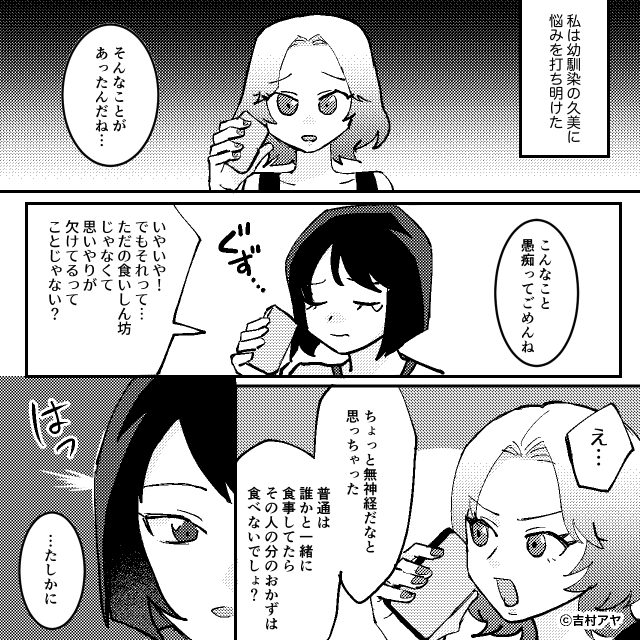 「これ、あなただけの量じゃないんだけど。なぜ当たり前に私の分まで食べるの?」