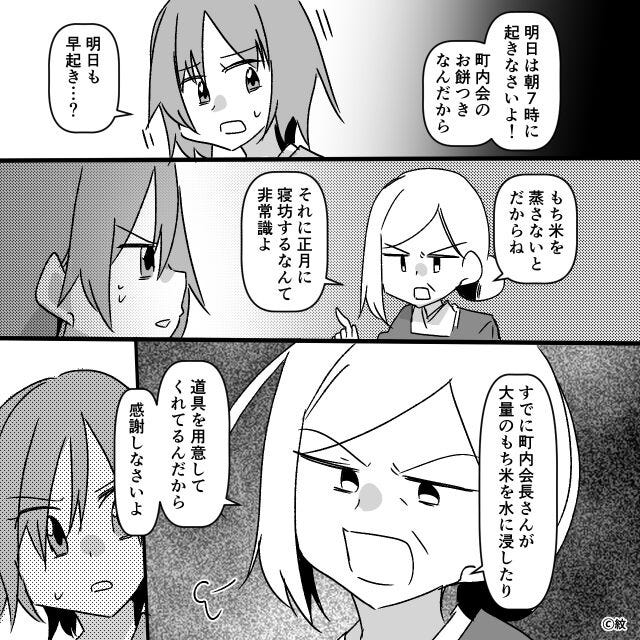 到着するなり、義母から町内会の餅つきやおせち作りの指示が飛び、こき使われます。