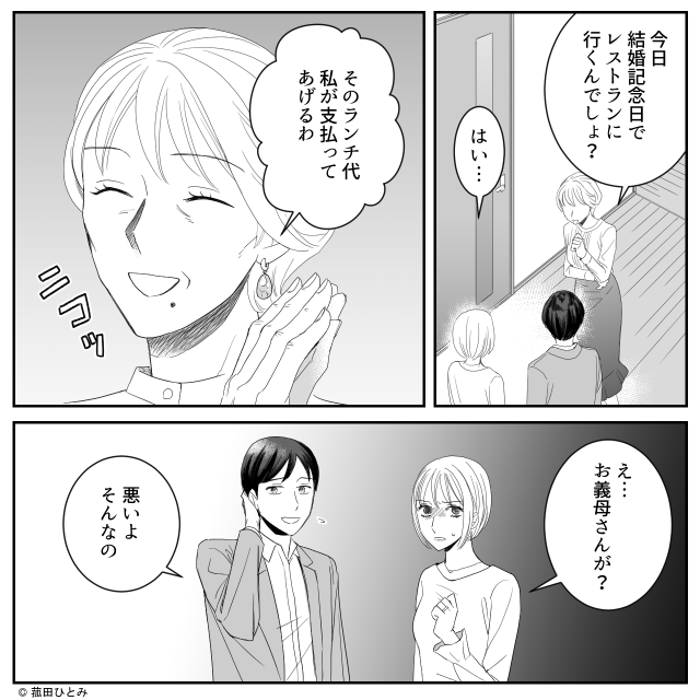 結婚記念日の食事なのに、義母が笑いながら嫁に帰宅を促す…。