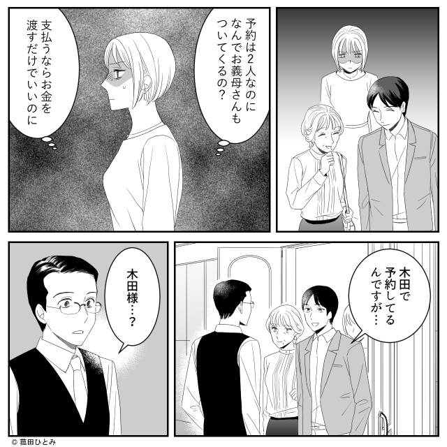 夫が「木田で予約してるんですが…」と告げると、スタッフは不思議そうに言います。