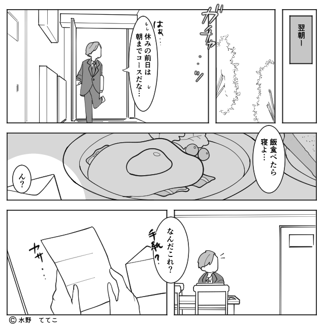 翌朝に帰宅した夫は、娘からの手紙に気づいて開けてみると…。