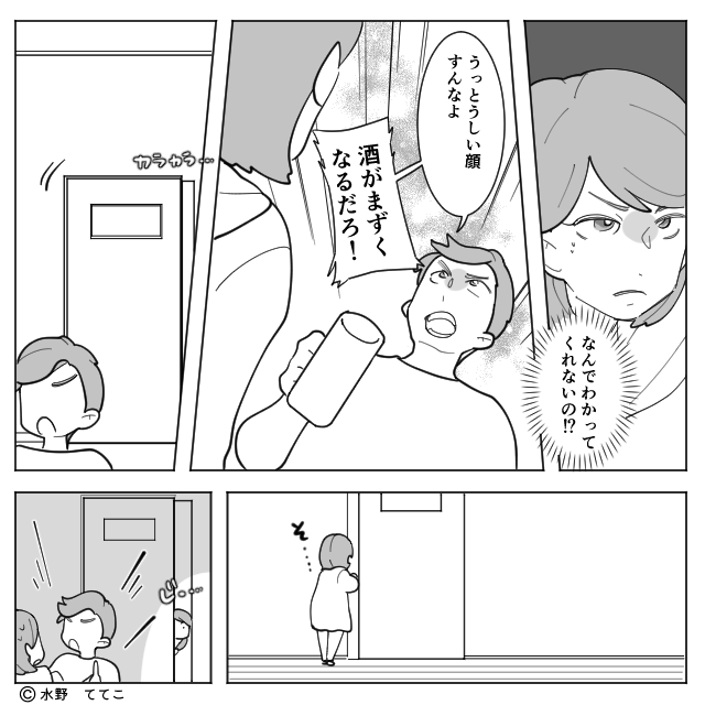 そのせいで「うっとうしい顔するなよ。酒がまずくなる」と怒らせてしまいました。