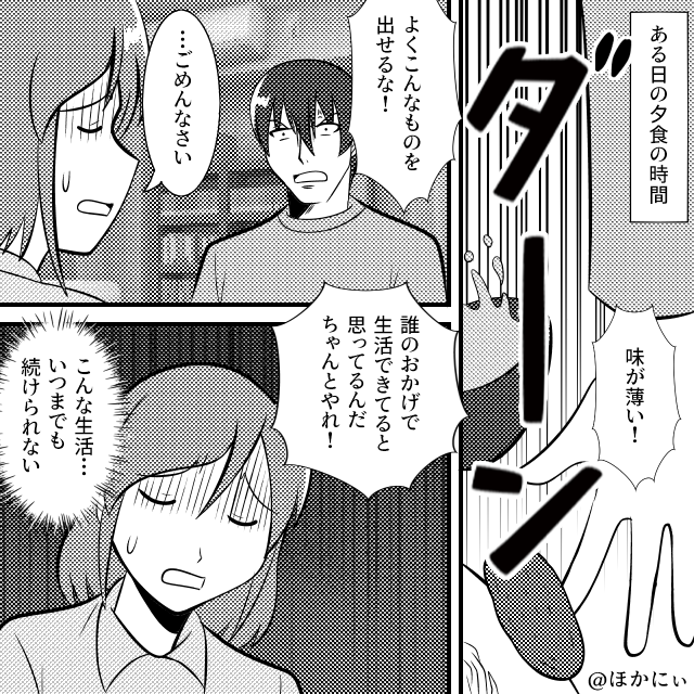 「こんなもん、よく出せるな!」夕食を“叩きつける”モラ夫。しかし後日⇒変貌を遂げた妻の姿に…夫「お、お前…?」
