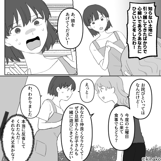 夫が町内会長の息子だと知ると、隣人の顔色はみるみる青くなっていきました。
