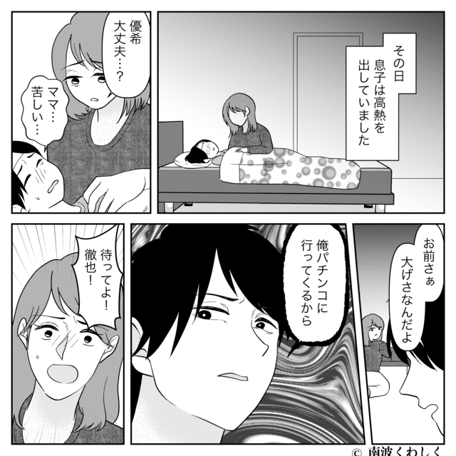 病気の息子を置いてパチンコに行く夫