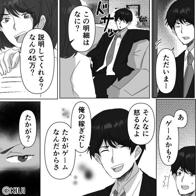 【45万円】ゲーム課金した夫が「返せばいいんだろ」開き直り!?しかし直後⇒「甘えるな!」義父の“条件”に「えっ…!?」
