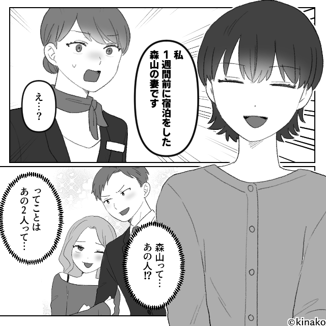 男性を責め立てる妻と浮気相手の声がロビーに響き渡り、周囲の客がざわざわと視線を向け始めました。