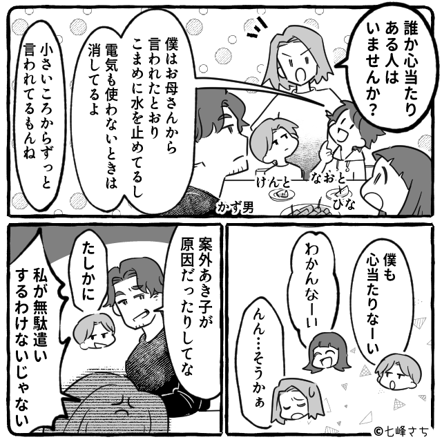 家族全員で節水・節電を心がけることを確認して、その日は解散しました。