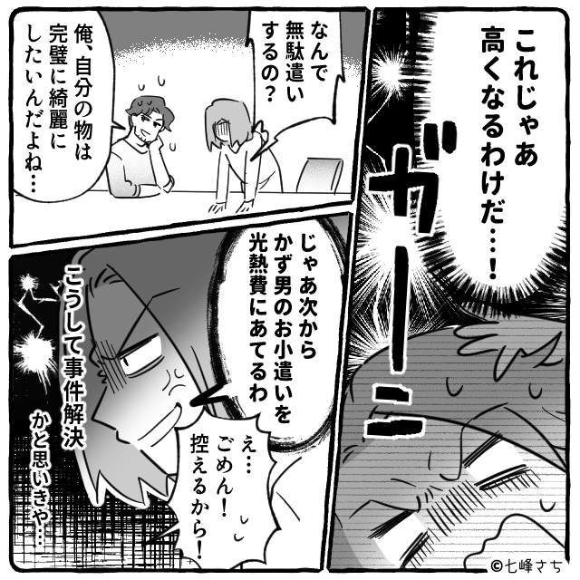 反省の気配すらない彼に、私は「今後はあなたの小遣いから光熱費を差し引く」と一言。