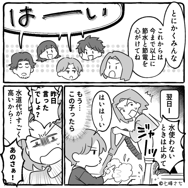 節約に協力する気がない夫こそが高い水道光熱費の元凶だった、という体験談でした。