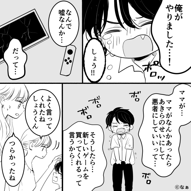 そして「何かあったら、息子くんのせいにしていいってママが言ったの」と泣き出します。