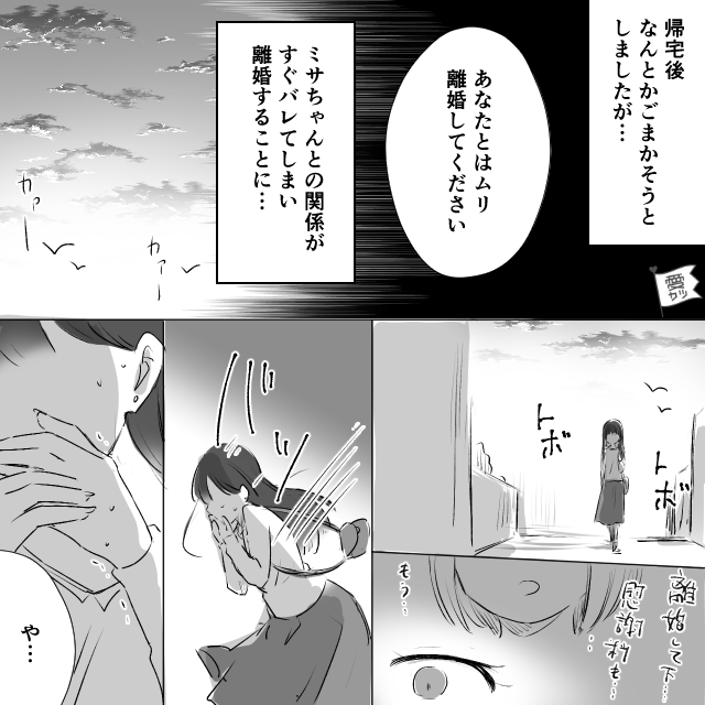 その後、私たちの関係はすぐに奥さんにバレ…先輩は離婚することに。