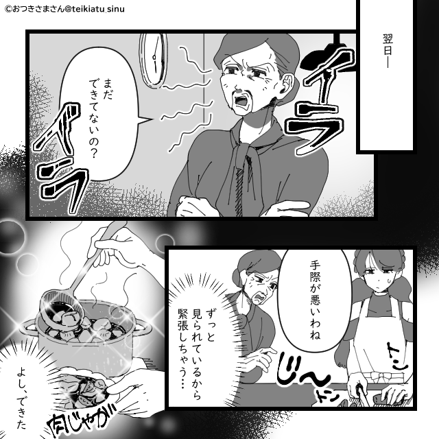料理中も背後にイライラした義母の視線を感じ、緊張していました。