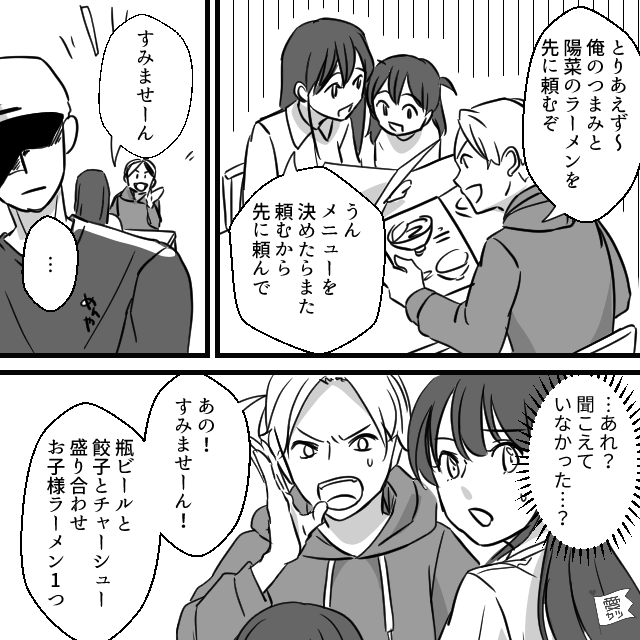 家族旅行中、客である自分たちに対して舌打ちをするラーメン屋の店員。