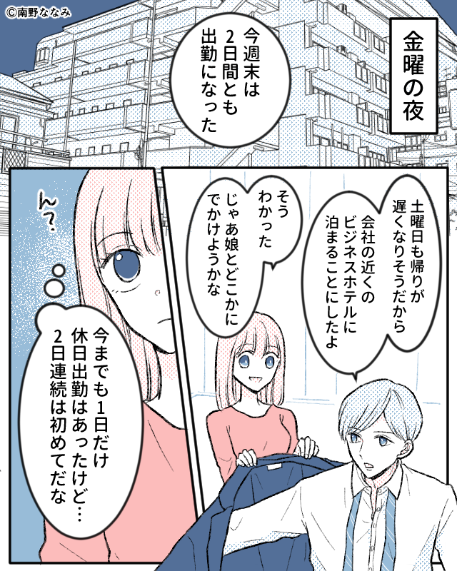 信じて送り出しますが、“2日連続“の言葉に違和感を抱く妻。
