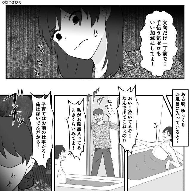 子どもが泣き出すと…口だけ出す夫。妻がお風呂中でも何もせず⇒「あんた何様!?」ブチ切れた妻が夫を黙らせた【一言】