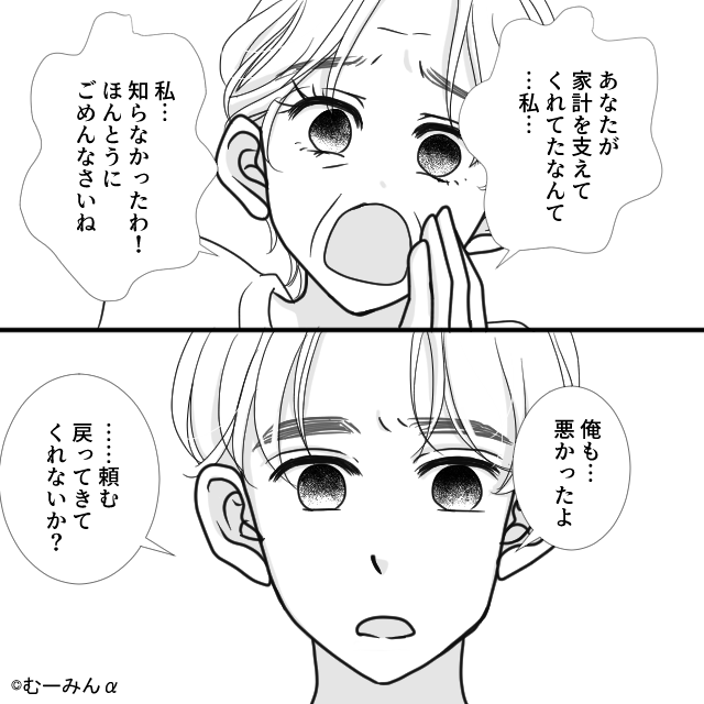 元夫も「俺も悪かった」と謝罪し、戻ってきてほしいと頭を下げます。