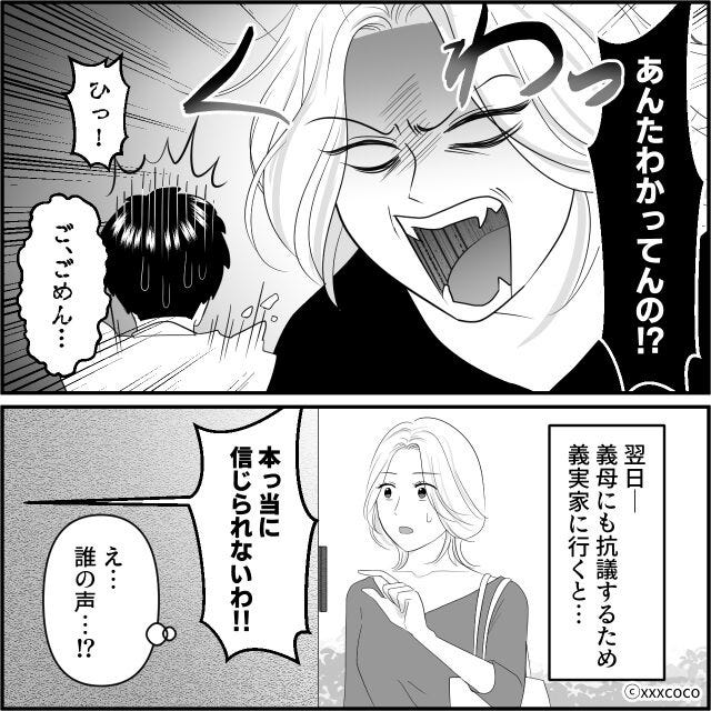 翌日義母にも抗議しに義実家に行くと、誰かが怒っている声が聞こえてきて…。