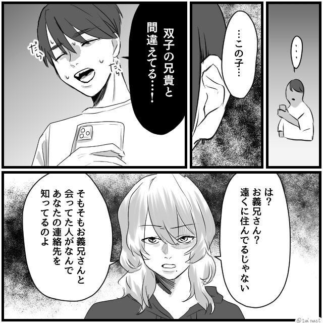 「これ、なに…?」スマホに届いた不審な通知にゾッ⇒「双子の兄貴と間違えられてる…」夫の汗が止まらなくなったワケ