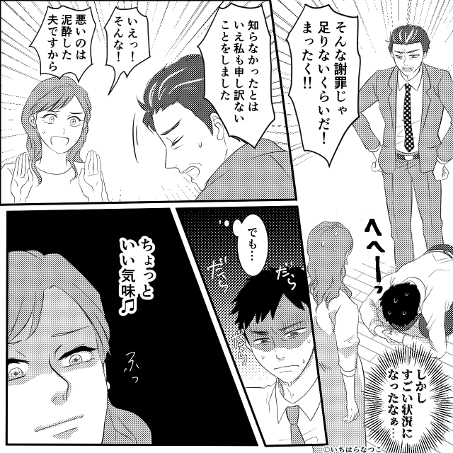 夫は上司に睨まれ、その場でひたすら頭を下げるしかありませんでした。