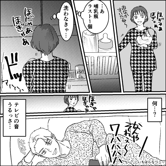 リビングからは夫の笑い声と、大音量のテレビが聞こえてきます。