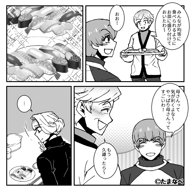 「え…?なにを言ってるの?ママも同じお寿司じゃない」