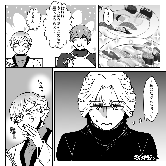 お寿司を均等に盛りつけると言いながら、私の分だけ安いお寿司にしていたのです。