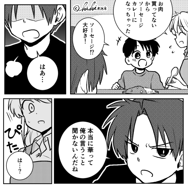 同僚たちが帰った後、息子にカレーを振る舞ったとき、夫が口を開きます。