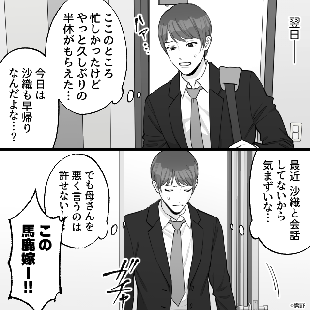 義母は夫の存在に気づかず、怒りに任せて怒鳴り散らしています。