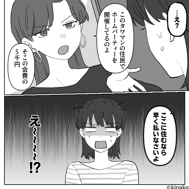 「そこの会費の5,000円。ここに住むなら早く払いなさいよ」