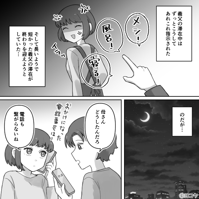 私はずっと義父から「メシ!」「風呂!」「寝る!」と指示を受け続けていました。
