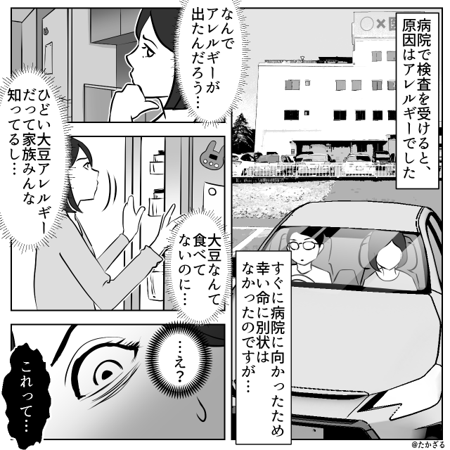 病院での診断結果は、重度の大豆アレルギーによる発作でした。