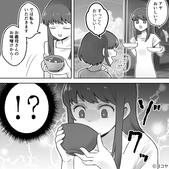 さっそく私も義母がつくったお味噌汁から口をつけたところ…。