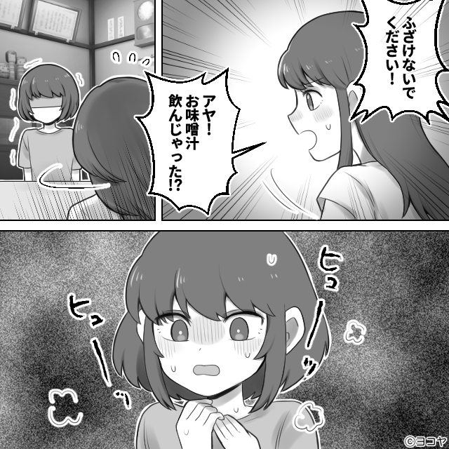 その瞬間、横にいた義父がお味噌汁を噴き出しました。