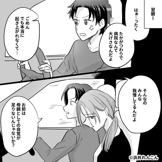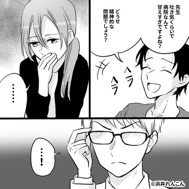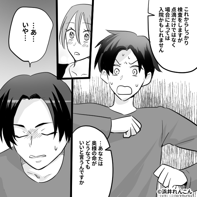 つわりで苦しむ妻に…「吐き気で病院なんて甘え」鼻で笑う夫。だが⇒「旦那さん…」医師の放った【言葉】に夫は震え上がる!?