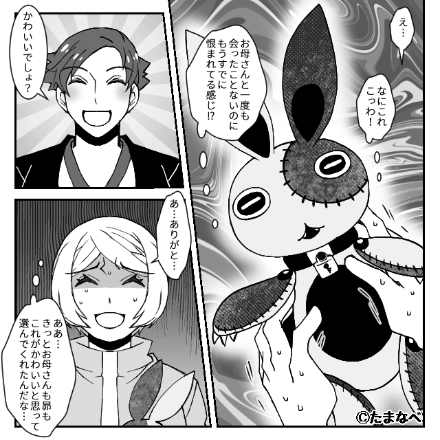 包みから出てきたのは、不気味なデザインのぬいぐるみでした。