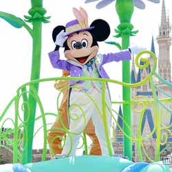 「ヒッピティ・ホッピティ・スプリングタイム」は、ミッキーマウスが見つけたひみつのイースターガーデンを舞台に、ディズニーの仲間たちがイースターバニーたちと一緒にイースターのお祝いをするヘンテコで楽しいパレード。春の一大イベントであるイースターに、新パレードが2年ぶりに登場した。“うさ耳”ミッキーが春の訪れをお祝い