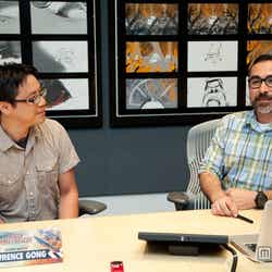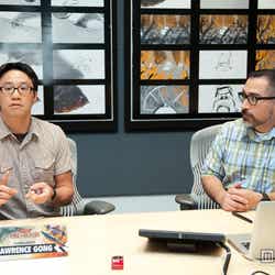 モデルプレスを迎えてくれたのは、ストーリー・ヘッドのアート・ヘルナンデス氏と、ストーリー・アーティストのローレンス・ゴング氏の2人。ストーリー・アーティストとは、脚本のページに書かれた内容を画にして描き、それぞれのシーンのカメラアングルやパフォーマンス、ステージングを発展させる作業を行うチームのこと。アート氏は『プレーンズ2』のストーリーのヘッドを担当し、ストーリー・アーティスト全員を監督した。脚本が出来上がり、映画を作るゴーサインが出ると、脚本はいくつかのシークエンスに分けて8~10人のストーリー・アーティストに手渡され、ストーリーボードとしてビジュアル化されていく。そのボードは後の作業全てに使用されるため、いわば作品のビジュアル面の基盤となる重要な工程。監督と頻繁に打ち合わせを重ね、時にはストーリー・アーティスト自ら脚本にアイデアを付け加えることもあるという。