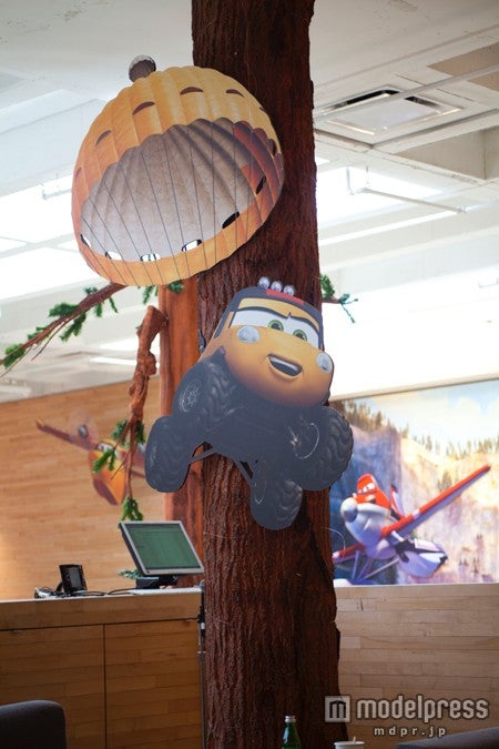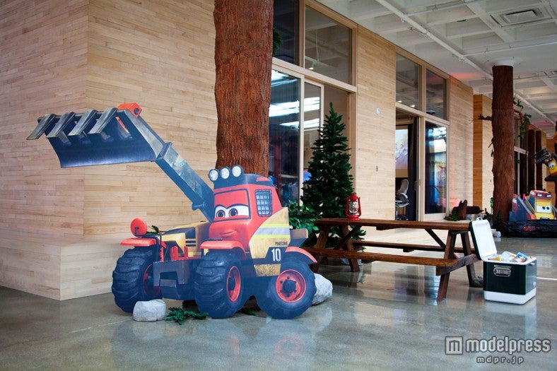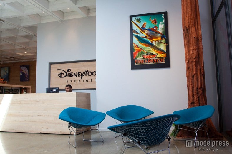 まさに『プレーンズ2』一色の内装は、今作に関わった900人超のスタッフ達の創造力を掻き立てている。共有スペースには、休み時間にビリヤードなどのゲームを楽しめるリフレッシュスペースも。開放感のあるカフェテリアのほか、シリアルやフレッシュなフルーツ食べ放題のカウンターも用意され、スタッフの健康をサポート。ランチタイムには思い思いの場所でリラックスするスタッフ達の姿が見られた。各会議室にも可愛らしいおもちゃやアートワークが飾られ、そのひとつひとつに釘付けになってしまう。会社と言うよりも、テーマパークに飛び込んだような感覚。隅々まで徹底されたディズニーマインドを体感することができた。(モデルプレス)