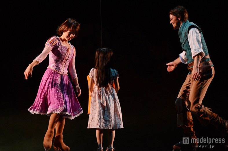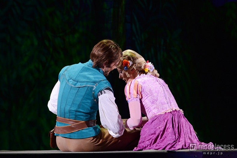 「塔の上のラプンツェル」が今年初めてロングバージョンで物語が公演され、ラプンツェル、フリン、マキシマス、ゴーテルなどの人気キャラクターが登場。特殊な布を腕に巻きつけ宙を舞う同演出新演出“エアリアル”では、その美しいパフォーマンスに観客から大きな歓声が上がった。