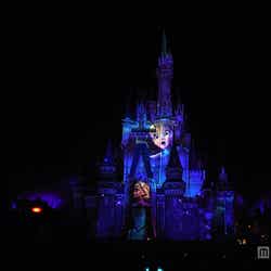 映画の名場面をシンデレラ城にプロジェクションマッピングで映し出す同プログラム。特別バージョンでは、アナが久しぶりに外の世界と接触できる特別な1日に、新しい出会いを期待して「First Time in Forever」を歌うシーンや、エルサがこれまでのように自分の感情を抑えて生きていくのをやめ、ありのままで生きていく決意を「Let It Go」に乗せて歌うシーンが追加され、アナ、エルサはもちろん、オラフやスヴェンも登場。パイロなどの演出や美しい映像でパークを幻想的な世界に包み込んだ。