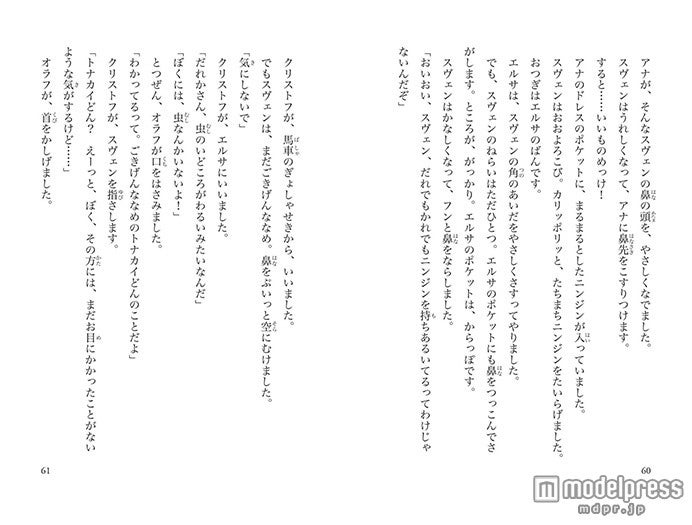 さらに、映画で登場した場所やアイテムなども再登場。描き下ろしの挿絵もふんだんにあり、「アナ雪」の世界をさらに掘り下げ、より楽しめる内容となっている。特に2巻では、映画の中でアナとエルサの運命に深く関わったキャラクターも登場し、映画を観た人なら誰しも気になる展開が描かれる。(modelpress編集部)