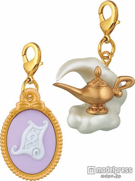 各作品をモチーフにしたカメオ風デザインと、「フランダー」や「ガラスの靴」などを模ったマスコットのチャーム2個セット。
