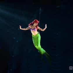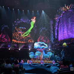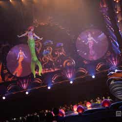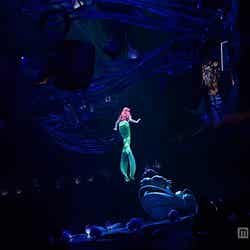 今回、6人の姉たち、タツノオトシゴが同ショーに初登場。さらに、「パート・オブ・ユア・ワールド」「アンダー・ザ・シー」といったお馴染みの楽曲に、「トリトンの娘たち」「陸と海で」「歌の力」が追加。客席の周囲には映像を映し出すスクリーンも新たに登場し、途中シャボン玉が舞う演出も加わるなど、これまでとは違ったステージとなった。