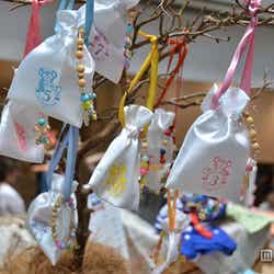 イベント開催にあわせて、表参道ヒルズでは、建物全体と周辺道路にダッフィーのフラッグを設置。会場ではダッフィー、シェリーメイ、ジェラトーニが乗った気球が宙に浮かび、階段奥に鎮座する2メートル越えのダッフィーとは、一緒に記念撮影が出来るとあってオープンと同時に大勢の来場者が行列を作った。