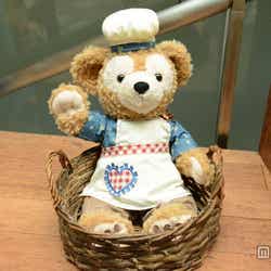 また、7月3日より公式カメラアプリに新たに加わるエフェクトを、サンプル映像で紹介するブースも設置。ダッフィーのぬいぐるみの写真を撮ると、画面の中のダッフィーがつぶらな瞳をパチパチとまばたきする可愛らしい表情を楽しめる。歴代ダッフィーのコスチューム&新メニューやグッズの展示も