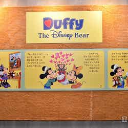 ダッフィー、シェリーメイ、ジェラトーニの紹介ブースでは、ダッフィーとシェリーメイが誕生するまでのエピソードや、ダッフィーとジェラトーニの出会いをストーリー仕立てで描いたイラストや、各キャラクターをイメージした飾り付けを展示。台座をふわふわのぬいぐるみ生地で覆って、よりキャラクターの可愛らしい世界観が伝わるような装飾が施されている。ぬいぐるみ生地で作った大きなふわふわポスター