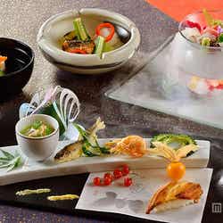 レストラン「花 Hana」の昼のお食事「ひるがお」では、新鮮な素材を使った「お造りの盛り合わせ」のほか、夏が旬のフッコ(鱸の幼魚)を山芋のすりおろしをとともに蒸した「フッコの薯蕷蒸し」など旬の味が楽しめる。そして、宵のお食事「ゆうがお」では、「鱧しんじょ清汁仕立て」や「冬瓜と鰻の冷製炊き合わせ」など夏にもっとも旨みが増す食材を使った料理が用意される。夏野菜の彩りを添えて涼しげに盛り付けられた料理は、和の味覚とともにひとときの涼を感じられそうだ。(modelpress編集部)