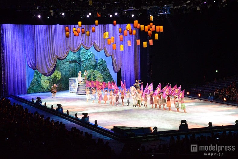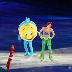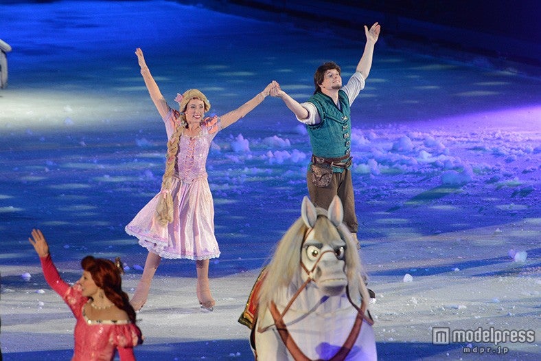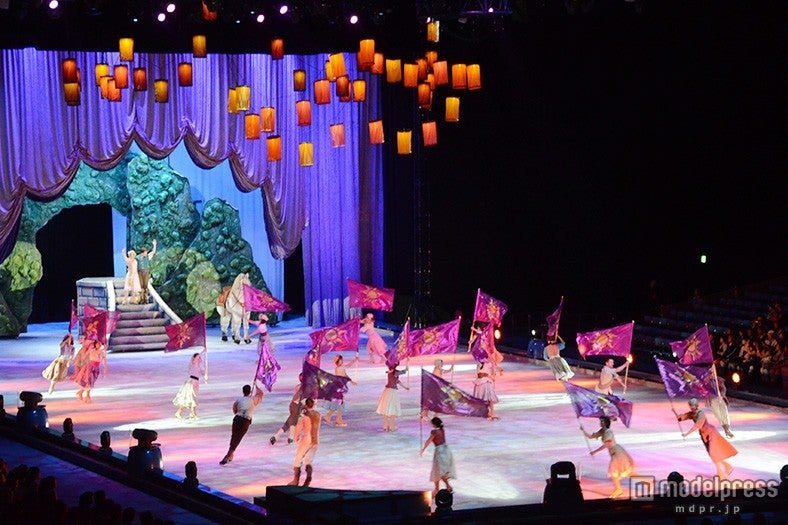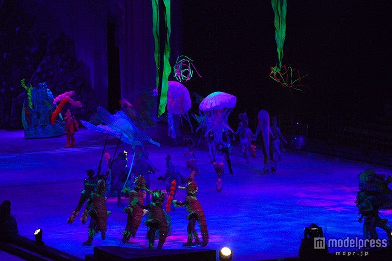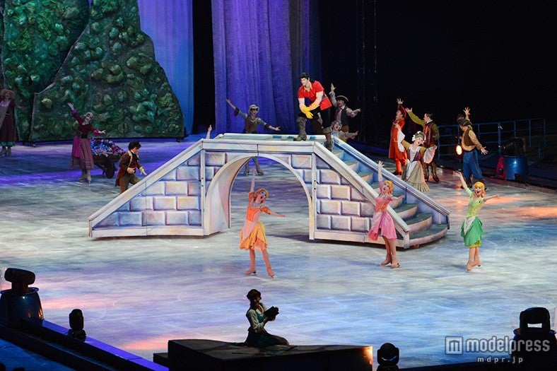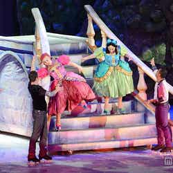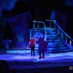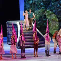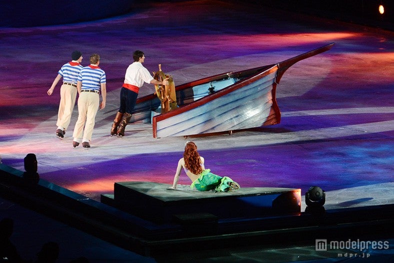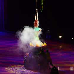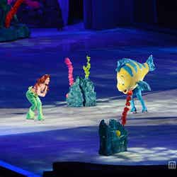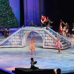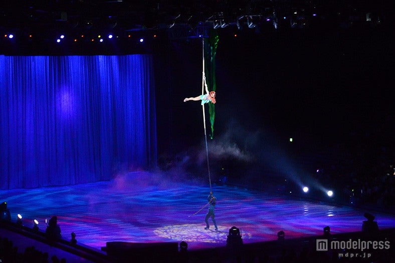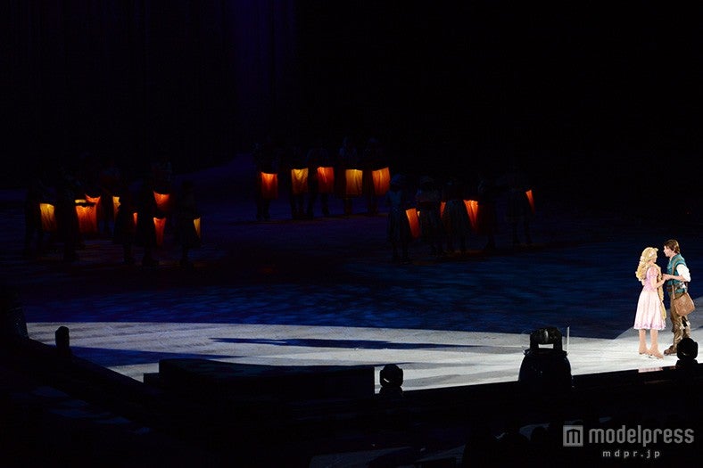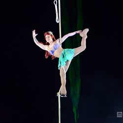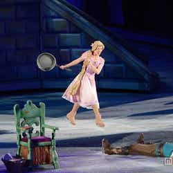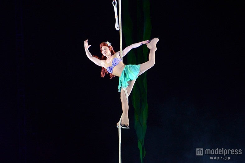このほかにも、「リトルマーメイド」のシーンでは、海底の世界から飛び出したアリエルは空中で華麗なるアクロバット“エアリアル”を披露。「美女と野獣」のシーンでは、城の家来たちがゆかいな晩餐会、「塔の上のラプンツェル」のシーンでは、ラプンツェルとフリンが塔から抜けだしてラプンツェルが外の世界に出て行く場面を再現した。